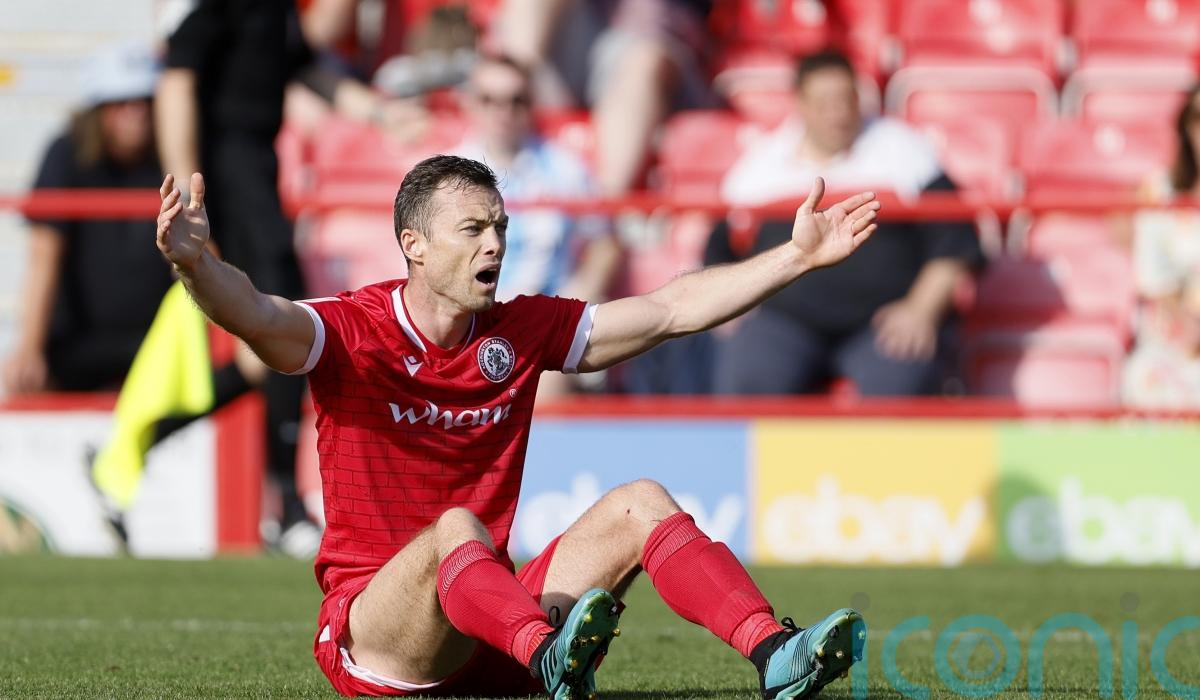 Whalley then put Accrington ahead in the 16th minute with an outstanding finish. Seizing on a misplaced pass by Jack Powell, the forward spotted Filip Marschall off his line and arced a shot over the goalkeeper’s head and into the far corner.