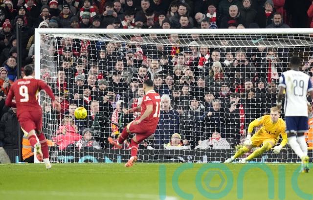 Early in the second half, Szoboszlai’s glancing header was only just clawed out on the line by Kinsky, who then brought down Nunez for the 51st-minute penalty.