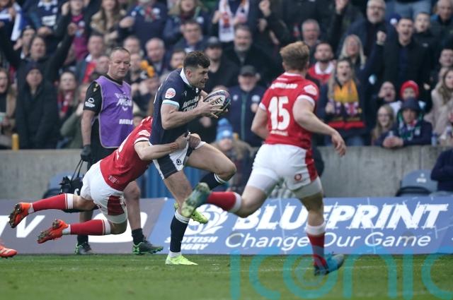 Scotland soon sparked into life, however, and they got themselves up and running with a superb multi-phase try in the fifth minute. Darcy Graham – back in the side after concussion – was instrumental, darting incisively towards the 22 before a perfectly-timed pass over his left shoulder to Kinghorn, who powered beyond the challenge of Anscombe to score.