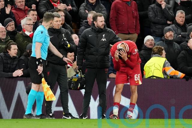 Liverpool’s disappointing night was compounded by an ankle injury to Trent Alexander-Arnold which will almost certainly rule him out of Sunday’s Carabao Cup final.