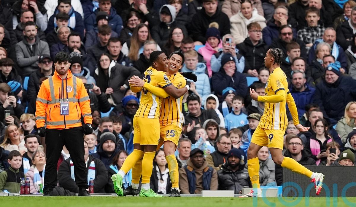 Nico Gonzalez hit the post as Pep Guardiola’s side chased a late winner but Brighton, who have never won away against City, had spurned their own gilt-edged chance when Carlos Baleba shot over.