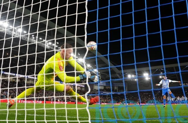 The striker’s angled shot was blocked by the legs of Seagulls keeper Bart Verbruggen, with Neco Williams unable to convert the rebound.