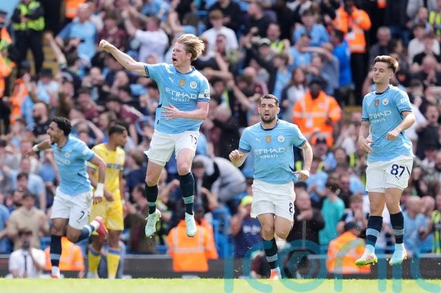 De Bruyne’s 33rd-minute free-kick changed the momentum and Omar Marmoush levelled moments later. Mateo Kovavic, James McAtee and Nico O’Reilly struck in a one-sided second half.