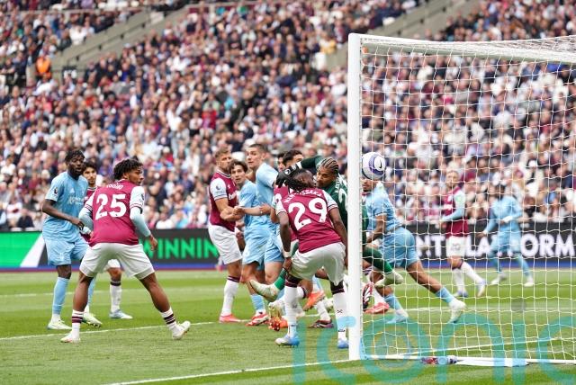West Ham, with no such lofty ambitions after a miserable season, almost took the lead in the second minute when Vladimir Coufal – who along with Aaron Cresswell was playing his final home match for the club – crossed for Tomas Soucek, whose header was tipped over by Matz Sels.