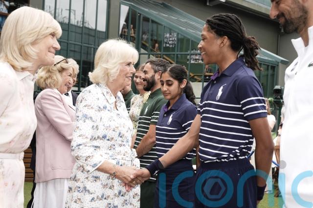 Camilla also met 15-year-old ball boy Karsten, from Harris Academy Merton, and 15-year-old ball girl Noreen, from the Tiffin Girls’ School, Kingston.