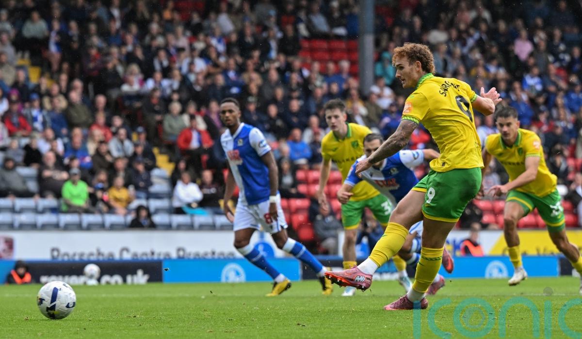 Josh Sargent’s brace gave Norwich a 2-0 win over 10-man Blackburn at Ewood Park in the Championship.