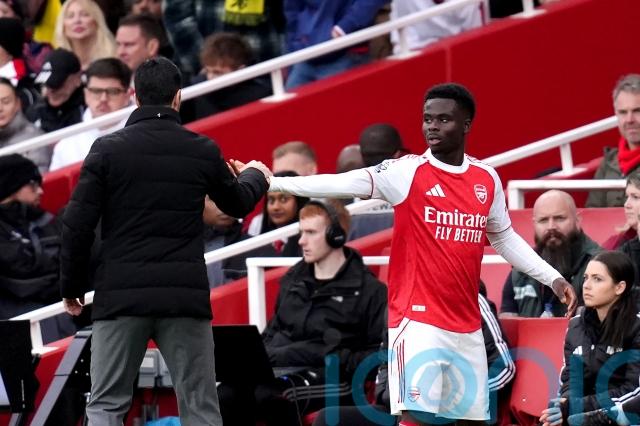 The only sour notes on another day of triumph for Arsenal in their pursuit of a first league title in 22 years arrived with injuries to William Saliba and Rice. The former was replaced at the interval, while the latter hobbled off in the closing stages.