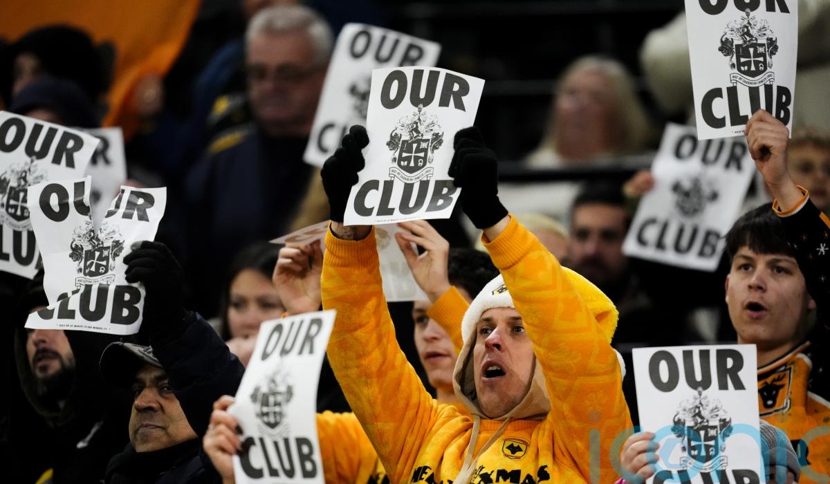Fans held up ‘Our Club’ signs in the 18th minute as they called for owners Fosun to sell the day after under-fire Jeff Shi stepped down as Wolves executive chairman.