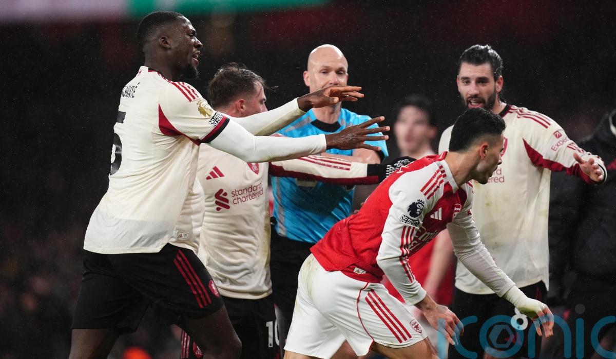 Martinelli was booked for the flashpoint, which provoked anger from Liverpool’s players.