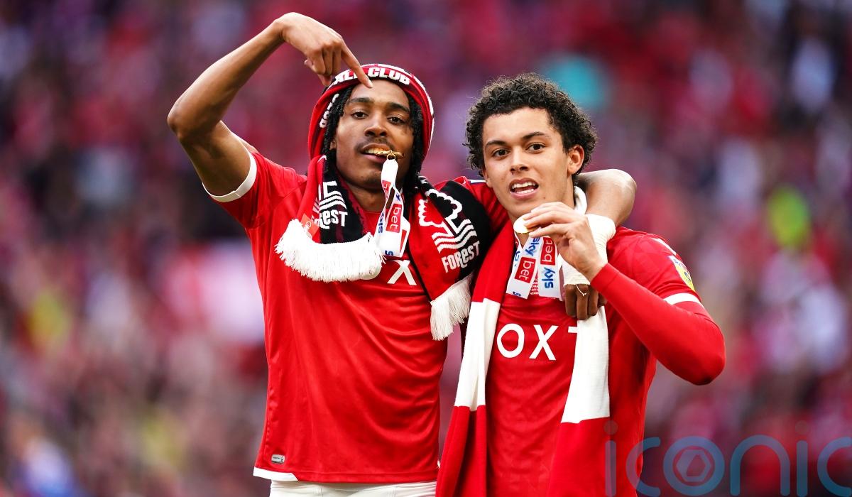 Nottingham Forest players celebrate the club’s return to the Premier League