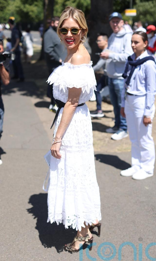 Sienna Miller was also among the crowd at the All England Club, wearing a white lace strapless dress and high heels.