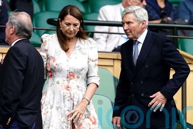 The duke and duchess were joined by the duchess’ parents Michael and Carole Middleton, who was wearing a white floral dress.