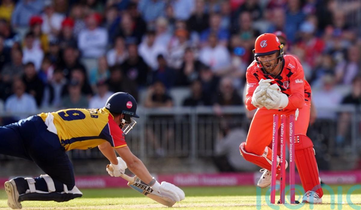 However, the 24-year-old’s swing and a miss was gobbled up by Lancashire wicketkeeper Salt, who whipped the bails off to dismiss the Eagles batter.