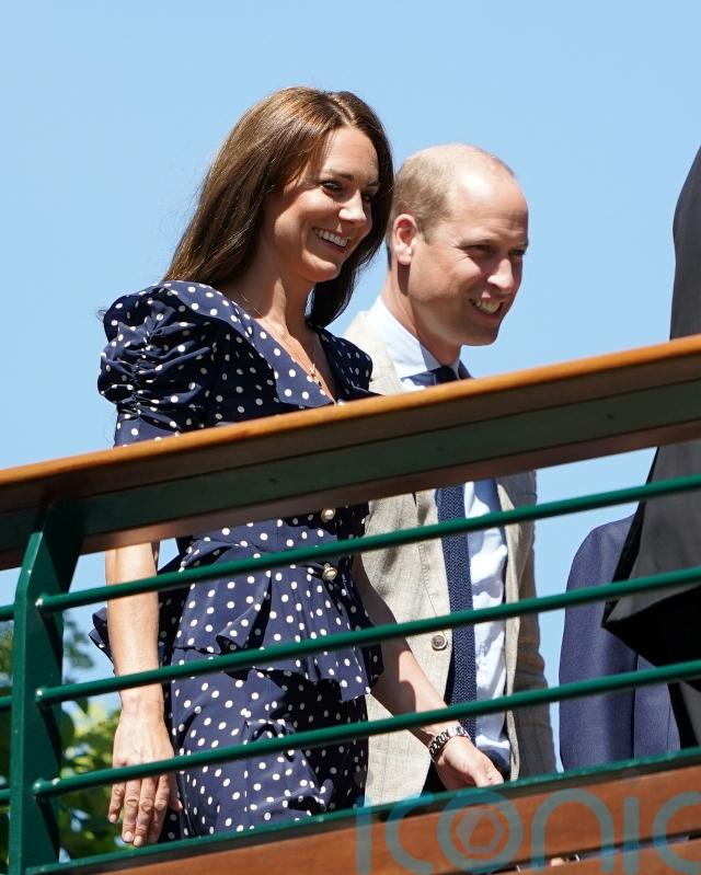 Kate, who is patron of the All England Club, looked summery in a navy blue skirt and matching top with white polka dots by designer Alessandra Rich.