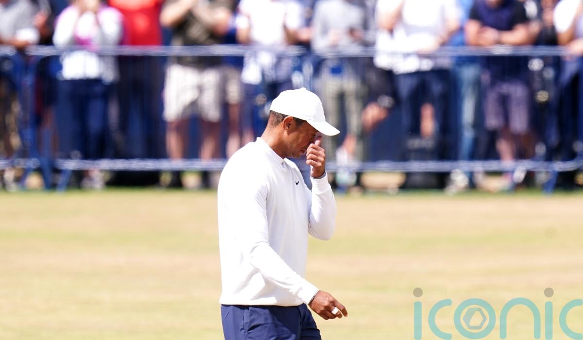 An emotional Tiger Woods fought back tears as he made an early exit from what is almost certain to be his last Open Championship at St Andrews.