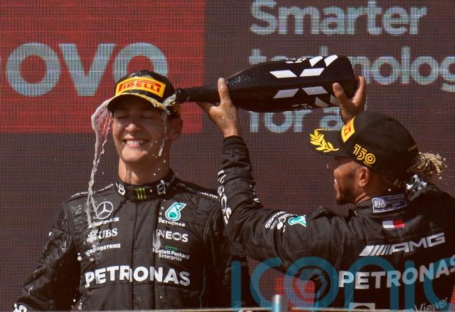 Hamilton’s Mercedes team celebrated their finest result of the season with George Russell finishing third to join Hamilton on the podium.