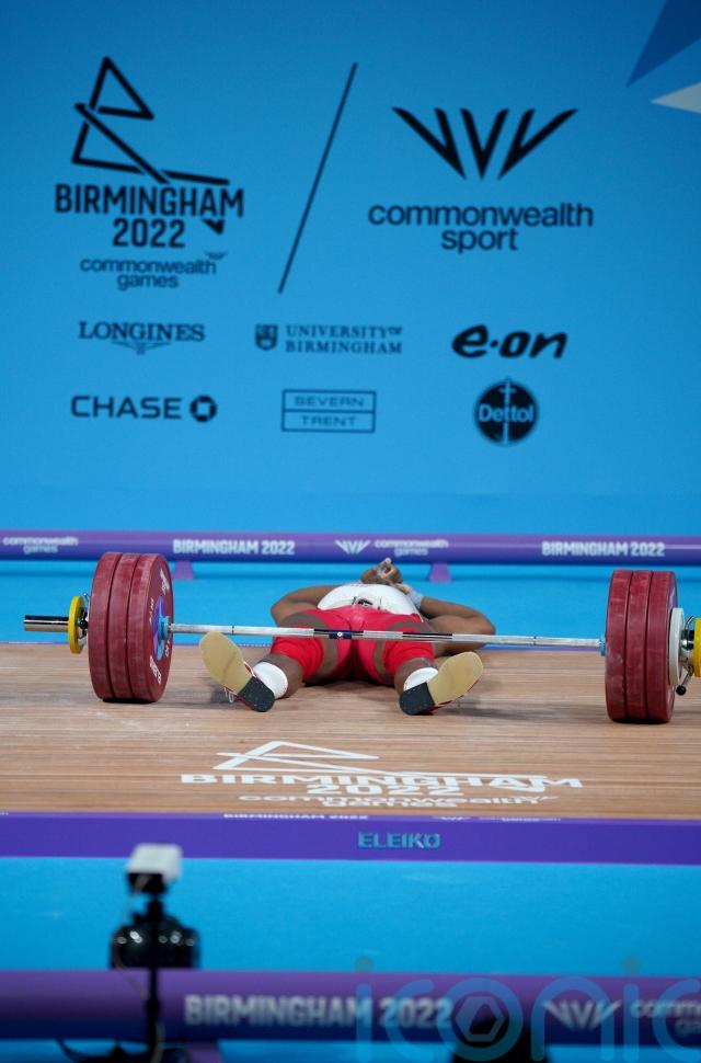Cyrille Tchatchet’s dream of capping his remarkable story with a Commonwealth medal for England was dashed when he cramped midway through the men’s 96kg weightlifting competition.
