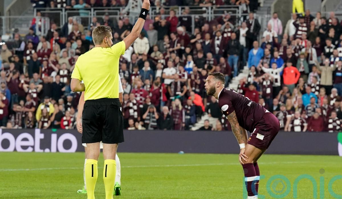 Ten-man Hearts crash out of Europa League after Jorge Grant’s red card