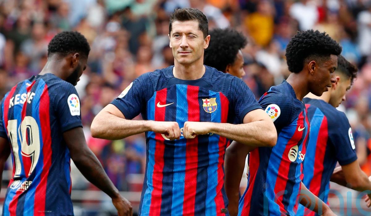 Lewandowski scored in either half and has now registered 11 goals in eight appearances in all competitions since joining Barca from Bayern Munich in the summer.