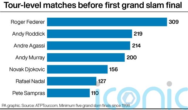 By the time he reached his first major final in 2003, he had played 309 tour-level singles matches across five years.