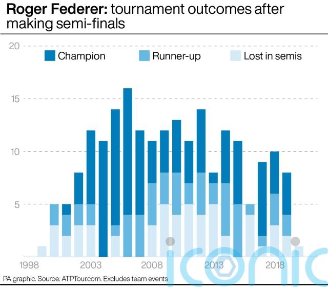Between 2008 and 2015, Federer reached 92 semi-finals but only went on to lift 35 trophies, with his success rate having halved to 38 per cent.