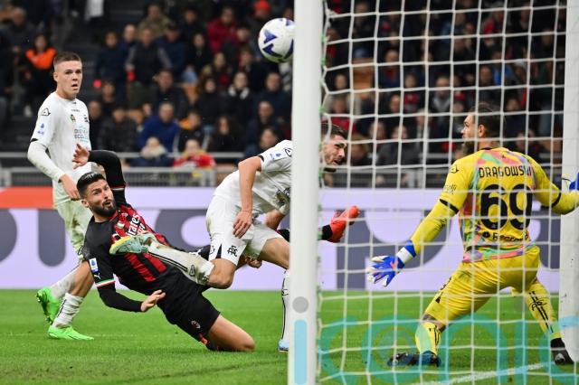 Giroud picked up a second yellow card for removing his shirt while celebrating his 89th-minute decider after Daniel Maldini had dragged the visitors back into it following Theo Hernandez’s 21st-minute goal.