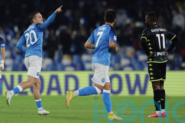 After Empoli lost Sebastiano Luperto to a second yellow card, Piotr Zielinski got Napoli’s second late on.