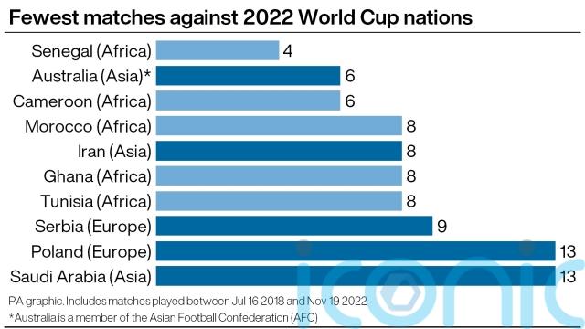 Since the previous World Cup in 2018, PA analysis shows there have been a total of 269 games between the 32 teams heading to Qatar, of which only 25 (9 per cent) have involved African sides.