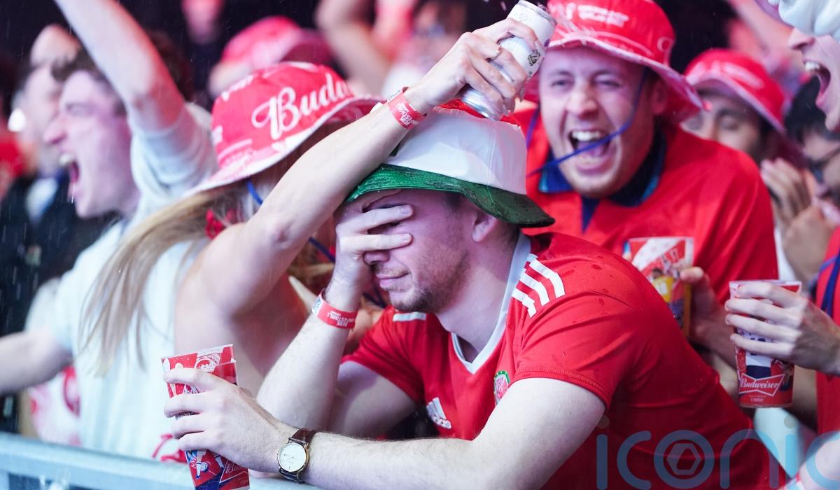 Drinks were thrown in the air by jubilant supporters after every goal in Tuesday’s “Battle of Britain” match, while “devastated” Welsh fans were left with heads in hands or seen leaving fan parks before the final whistle.