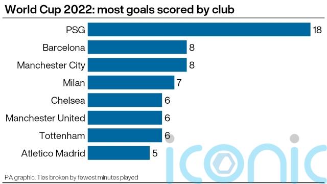 Paris St Germain contributed the most World Cup goals of any club (18), thanks to their star-studded strikeforce.